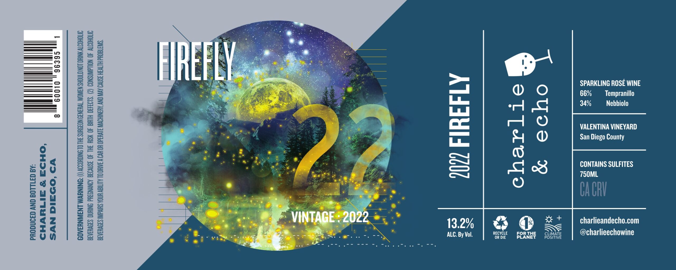 Tempranillo harvested on August 11, 2022 and left whole cluster for one day, foot-stomped, and then pressed the next day. Nebbiolo harvested August 26, going whole-cluster to press. Gentle, slow, press as for Champagne used for both, taking only the cuvee portion to stainless steel Charmat tank, and sealed so wine would naturally carbonate during fermentation. All spontaneous fermentations. Months after fermentations complete, wine chilled and sulfited (19 ppm). Bottled on March 17, 2024